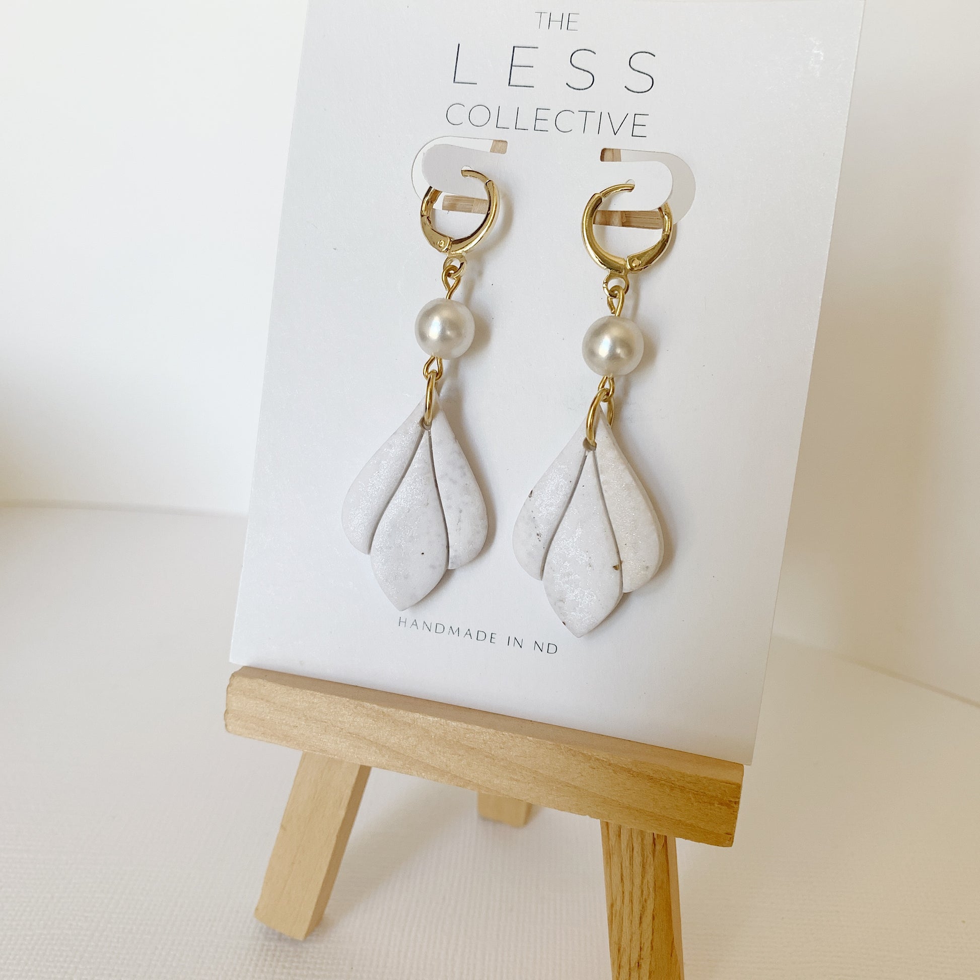 With a pearl bead connector and a marbled ivory/cream/gold clay drop piece, these earrings are literally one of a kind!