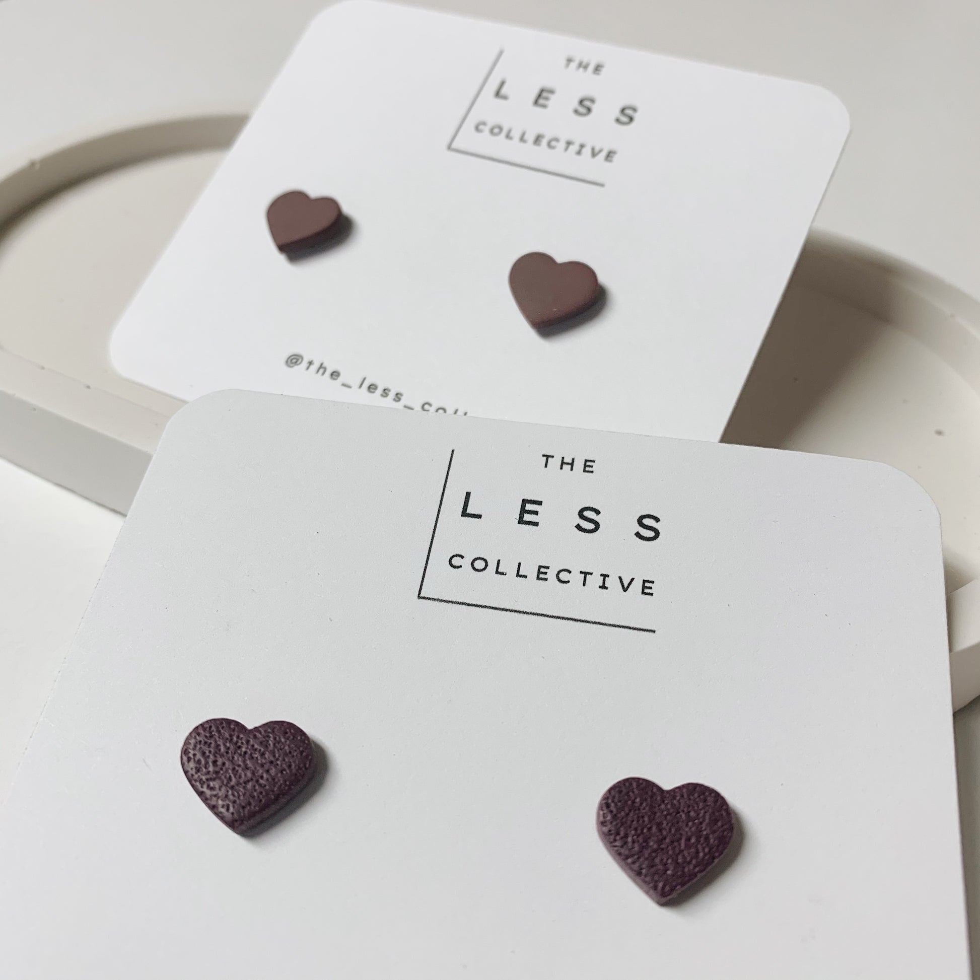 A little heart stud available for purchase by itself - in the same darker textured plum as our new Luna hoops. Made with our stainless steel stud posts and sealed with resin for maximum durability.