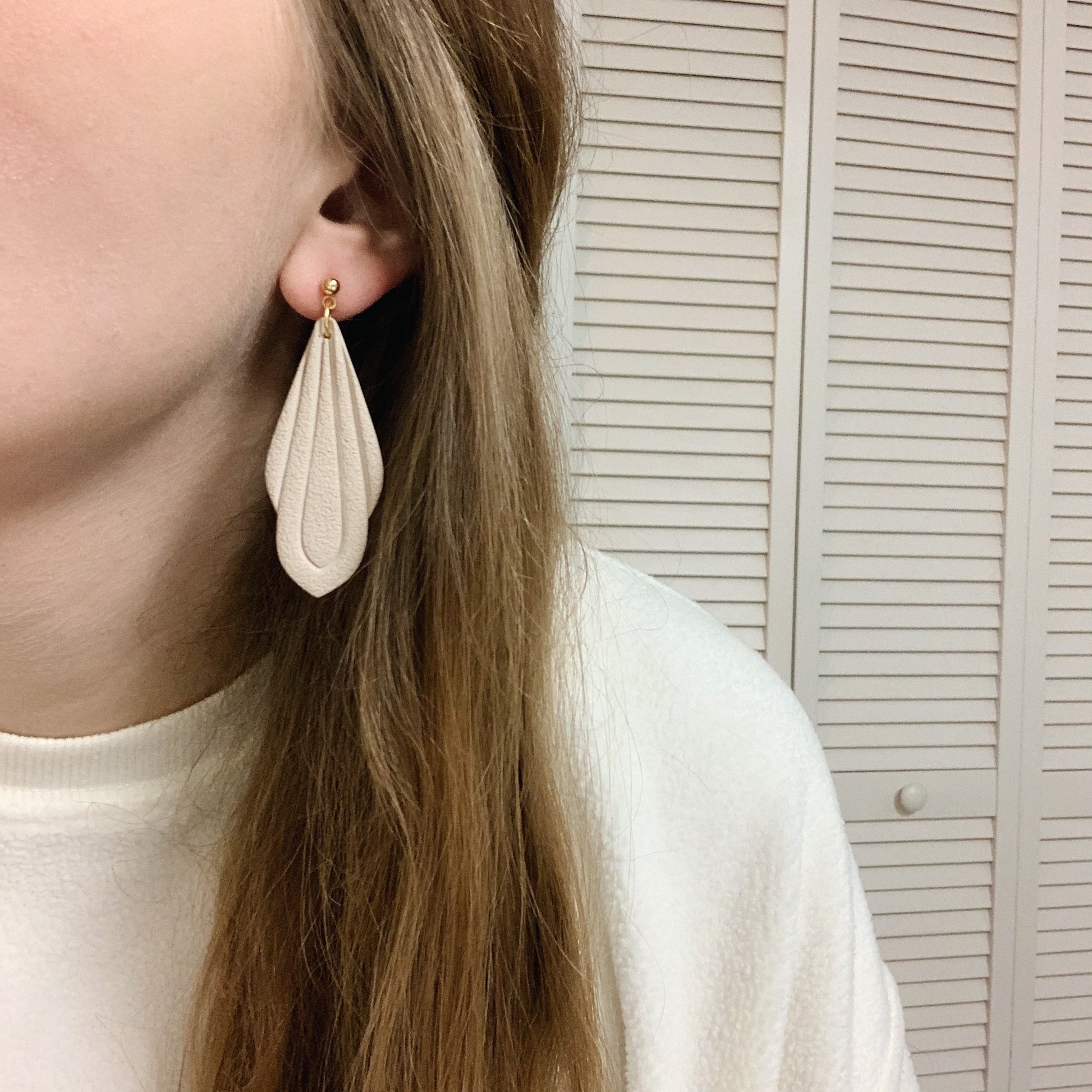 A larger dangle that’s still sleek and feminine, with the best little details. A textured finish and modern art lines to create a one of a kind earring.